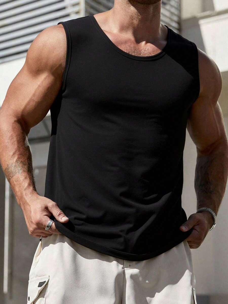 [Bestseller] 1 szt. męski czarny bezrękawnik sportowy, wygodny i przewiewny letni styl, uniwersalny strój na co dzień