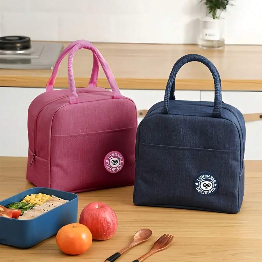 1 Duża torba na lunch z izolacją i podwójnymi kieszeniami, wykonana z grubej folii aluminiowej i wytrzymałej tkaniny Oxford, wyposażona w stały uchwyt, z izolacją cieplną i funkcją zabezpieczającą przed przeciekaniem, wielokrotnego użytku, wodoodporna torba na lunch z zamkiem błyskawicznym