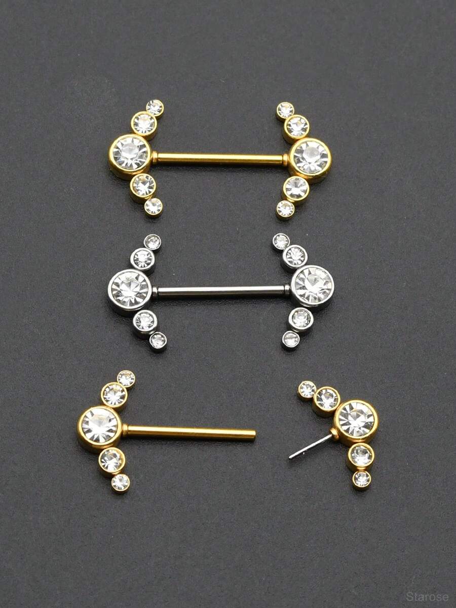 1 para dodaj radości swojemu życiu dzięki wtyczce ze stali nierdzewnej do piercingu sutków z okrągłym kryształem, 16G Pin 1.2x14mm Plugin Straight Barbell Piercing bez gwintu Pierścienie na sutki dla seksownych kobiet