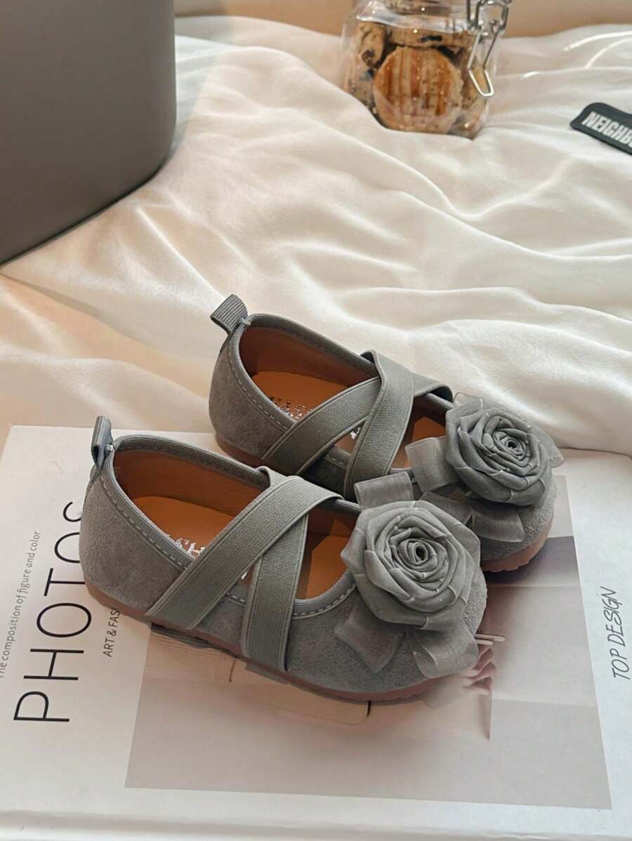 1 para dziewczęcych jednolitych kolorów zamszowych płaskich butów z dekoracją kwiatową, prosty elegancki styl francuski romantyczny, odpowiedni na wiosnę i lato