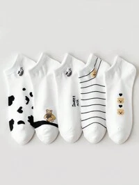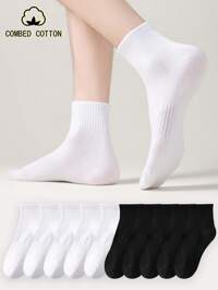 1 para/3 pary/6 par/10 par damskie krótkie skarpetki w różnych paczkach, całoroczne żakardowe, jednokolorowe, z elastyczną talią, oddychające, bawełniane skarpetki, styl uliczny, miękkie, wygodne, puszyste skarpetki w kolorze czarno-białym na co dzień, do domu, biura, szkoły, sportu, przytulne #5 Bestsellery