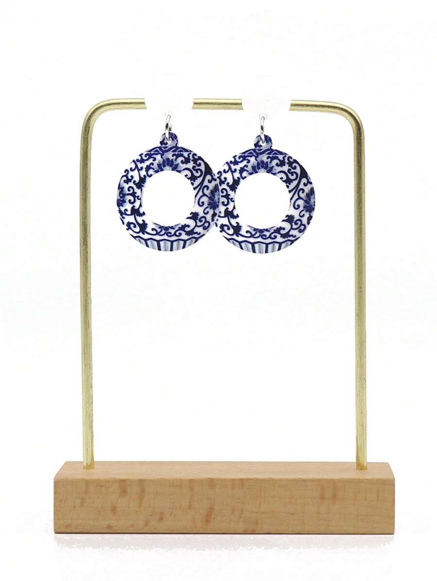 1 para nowych chińskich retro stylowych unikalnych niebieskich i białych porcelanowych pustych kwiatowych kolczyków, lekkie akrylowe geometryczne kolczyki wiszące, spersonalizowany prezent dla kobiet