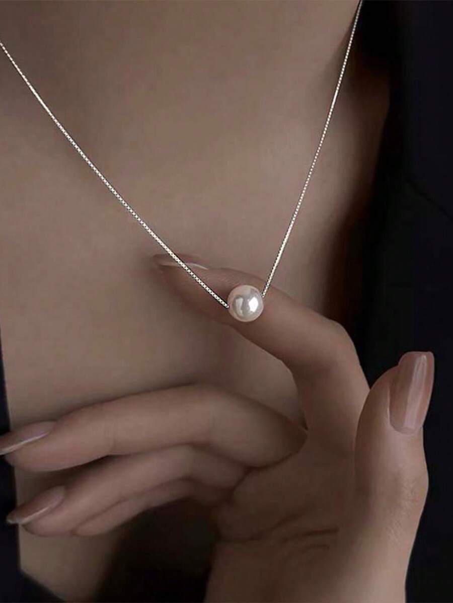 1 szt. Modny naszyjnik z pojedynczą perłą imitującą muszlę ze srebra próby 925 w klasycznym, słodkim stylu, do codziennej dekoracji AYN813