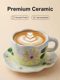 Zestaw do kawy z ceramiki, 2 elementy, 1 filiżanka i 1 spodek, seria wiosenna, odpowiedni na wiosenne festiwale i przyjęcia, prezent na Dzień Matki, do użytku w domu lub kawiarni, zmywarka, kuchenka mikrofalowa, piekarnik, lodówka 1 zestaw ręcznie malowanej ceramicznej filiżanki do herbaty i spodka, 3D rzeźbiona róża, tulipan, kubek do kawy z kwiatem stokrotki, 1 szt. 150 ml (5 uncji) kubek z uchwytem, 1 szt. talerzyk w kształcie liścia, 1 szt. łyżeczka w kształcie motyla, wyjątkowy wystrój domu, walentynki, dzień matki, prezent na Boże Narodzenie NEW