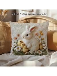 1 szt. dekoracyjna poszewka na poduszkę z nadrukiem w królika i kwiaty (wzór na poduszkę), z uroczym królikiem, kurczaczkami i kwiatowymi wzorami, zapinana na zamek, przypominająca plusz, dekoracja sypialni | Uroczy styl | Dekoracja wielkanocna, nadaje się do prania w pralce o każdej porze roku, nadaje się do sypialni, salonu, samochodu, sofy, łóżka i dekoracji siedziska #6 Bestsellery