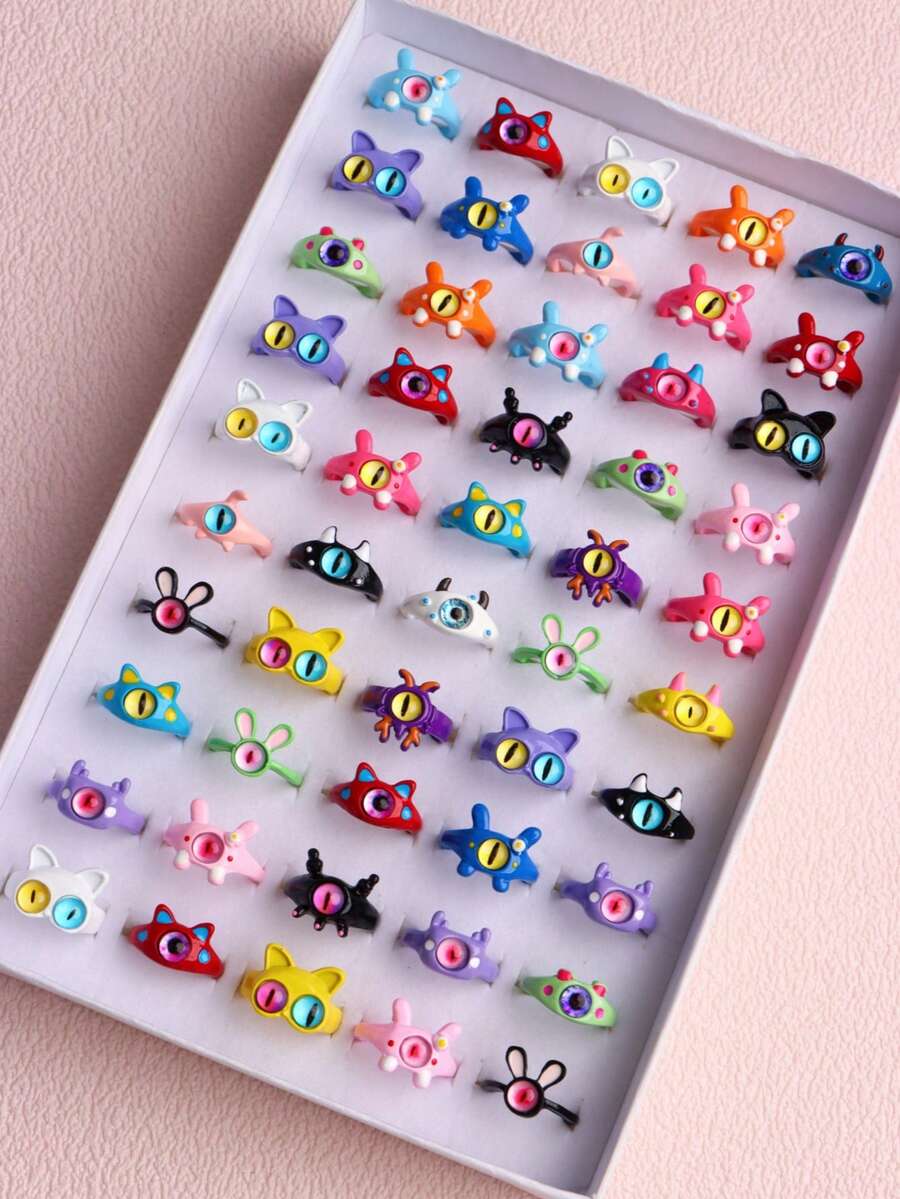 10/20/30 szt. Pierścień z kreskówkowym potworem dla dziewczynki, chłopca, słodkie kolorowe Y2k, słodka, fajna biżuteria, prezenty urodzinowe dla przyjaciół, codzienne akcesoria na imprezę