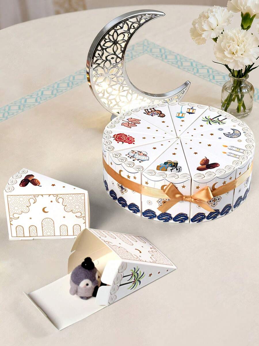 10-częściowe pudełko na cukierki w kształcie trójkąta na Ramadan, pudełko prezentowe na Eid Al-Fitr na Ramadan, odpowiednie do dekoracji na wesele, przyjęcie urodzinowe, artykuły na imprezę Eid Al-Fitr
