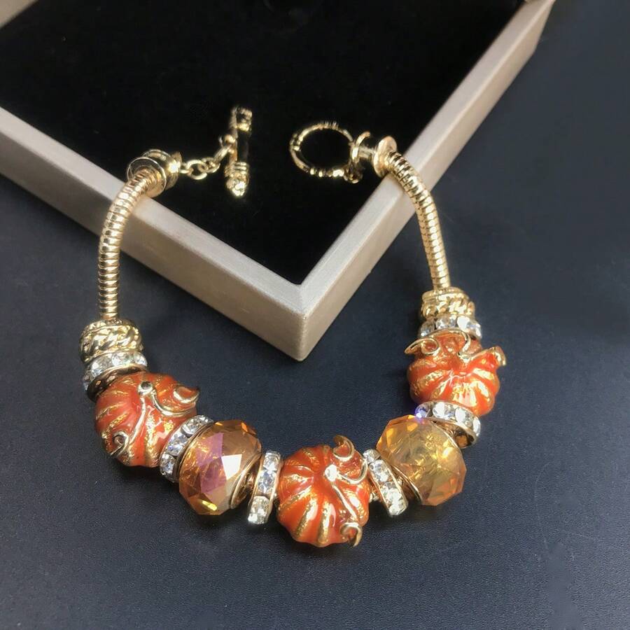 1 szt. Urocza emaliowana, słodka pomarańczowa dynia z kryształkami bransoletka z koralików dla kobiet na Halloween, dekoracyjna bransoletka z akcesoriami do biżuterii