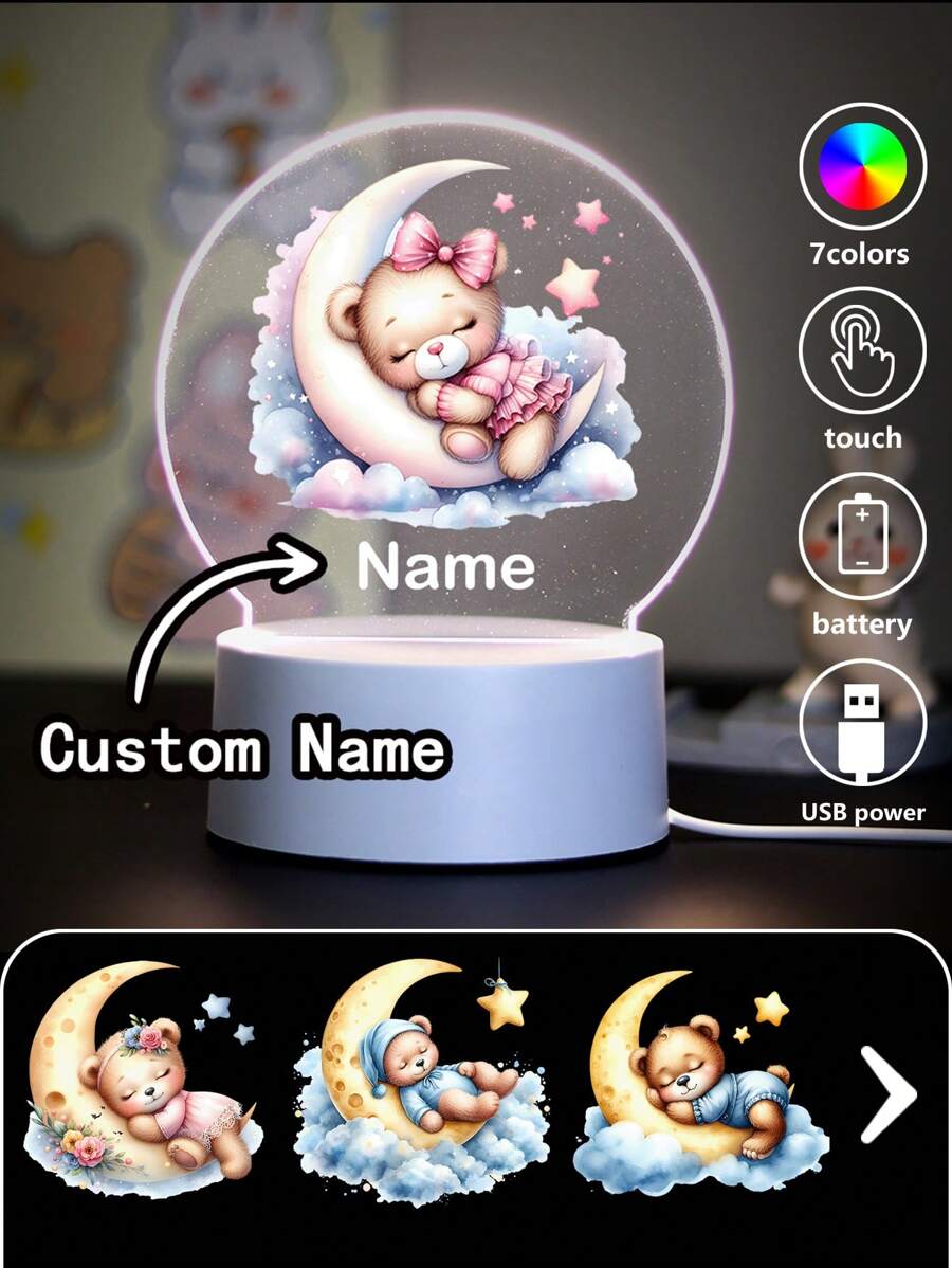 1 szt. Spersonalizowana nazwa z kreskówkowym misiem śpiącym na księżycu. Kreatywny prezent. Iluzja światła 3D. Lampka nocna LED. Ciepłe światło. Prezent urodzinowy. Prezent świąteczny. Dekoracja. Lampka nocna na biurko. Spersonalizowane prezenty. Wystrój pokoju. Wystrój domu. Wystrój jesienny. Dekoracje świąteczne. Zabawki. Spersonalizowane rękodzieło. Szykowna jesień. Dom i styl życia. Świąteczna atmosfera w domu. Jesienne odświeżenie domu. Dekoracje świąteczne. Harmonia w domu.