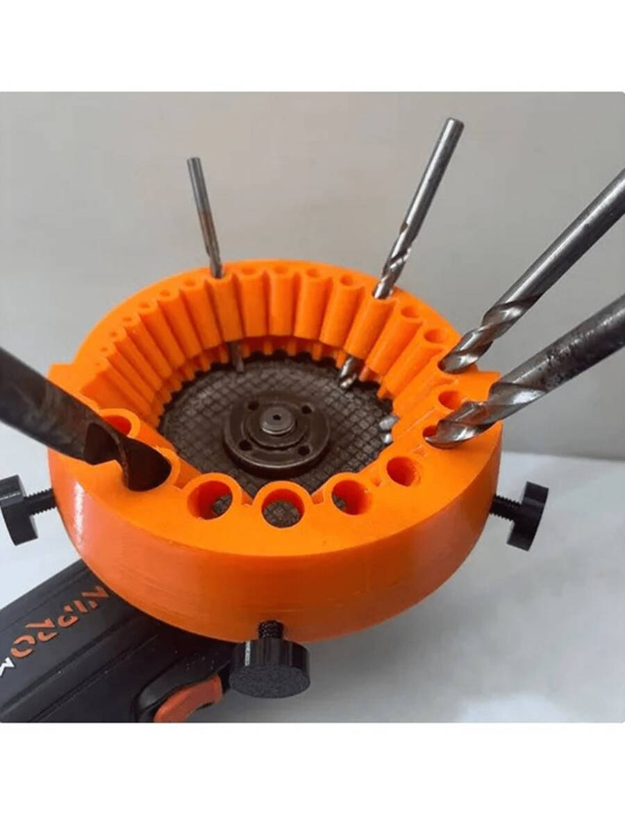 1 szt. drukowana w 3D temperówka do wierteł, elektryczna przystawka do ostrzenia wierteł, niebieskie rękawice robocze z powłoką nitrylową (mogą być noszone zarówno przez mężczyzn, jak i kobiety), stara temperówka do wierteł, szlifierka kątowa z dużym ostrzem do ostrzenia wierteł, wiertła o średnicy od 2 do 13 mm, temperówka 155 mm, wykonana z plastiku, nie wymaga prądu