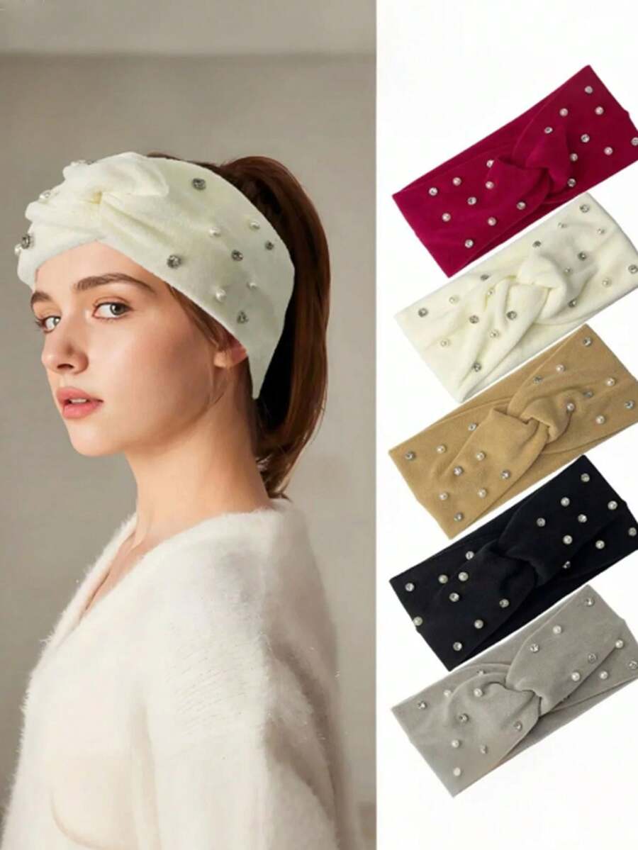 1 szt./6 szt. francuskiej opaski na głowę z kokardą na jesień/zimę, modna, uniwersalna perłowa chusta na głowę, wygodna, ciepła, dzianinowa opaska na głowę, świetny prezent dla przyjaciół, bestseller na jesień/zimę, opaska z kryształkami w kratkę, stylowy dodatek do włosów podkreślający twarz dla kobiet