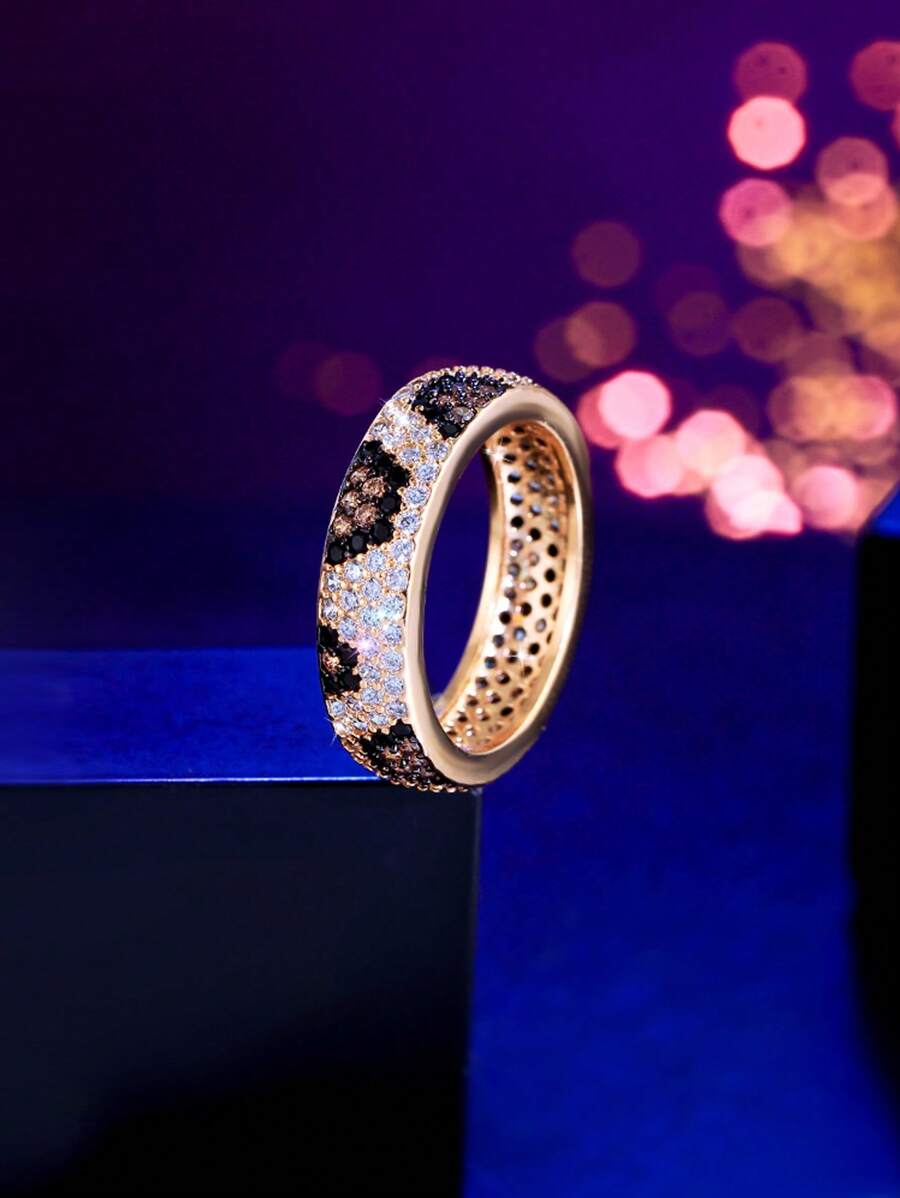1 szt. Atrakcyjny, unikalny wzór lamparta i węża, mikro-brukowany cyrkonia sześcienna, okrągły pierścień dla kobiet, zaręczyny, konkurs piękności, ślub, akcesoria do biżuterii imprezowej