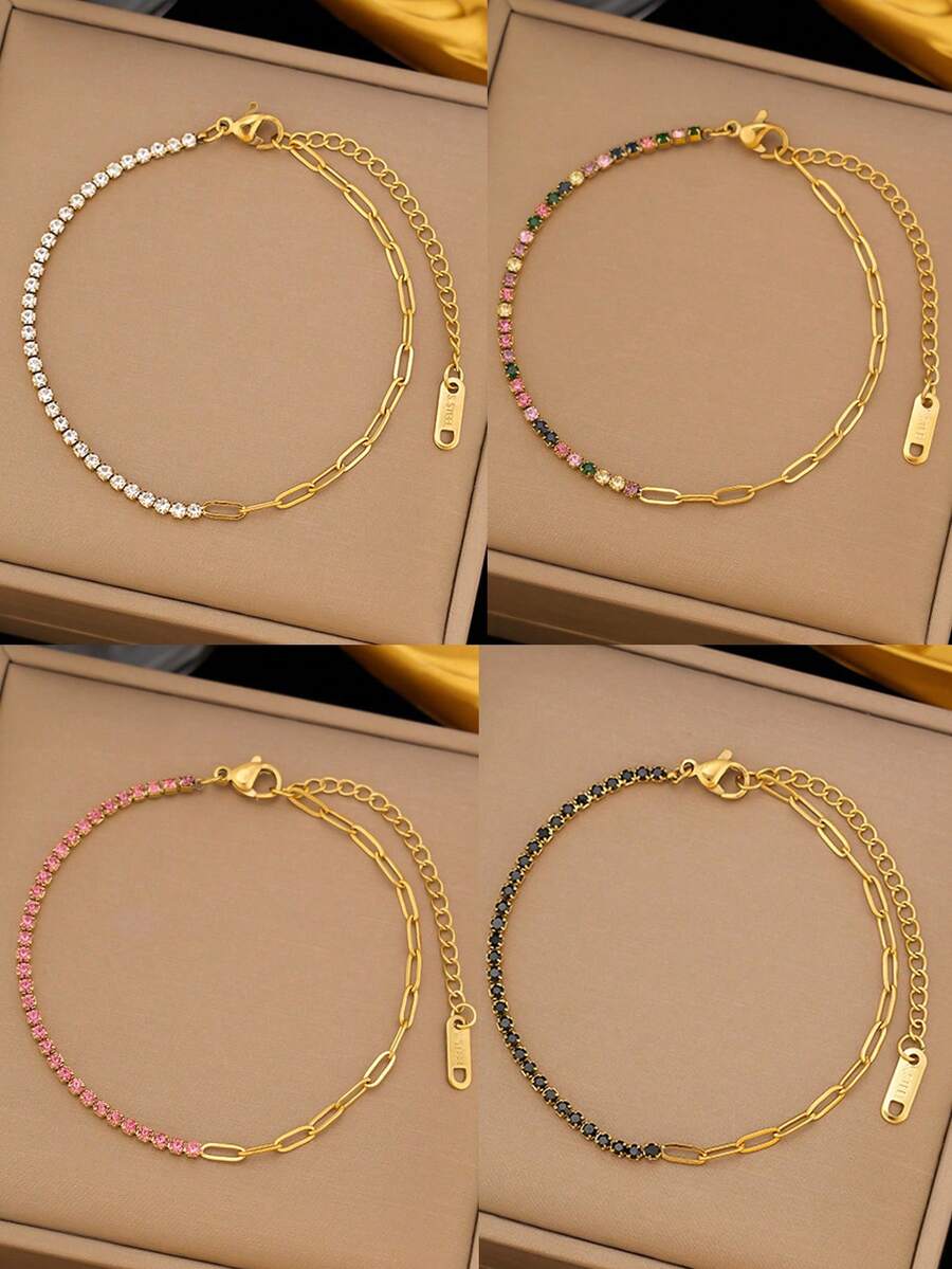 1 szt. Casual Ins 2025 Nowa 18-karatowa złota bransoletka ze stali nierdzewnej o wysokiej ochronie, kolorowa, kryształowa, odpowiednia do codziennego noszenia przez kobiety, uniwersalna, wodoodporna biżuteria, prezent na Walentynki (bez pudełka prezentowego)