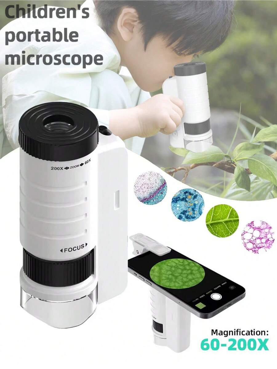 1 szt. Dziecięcy przenośny mikroskop 60X-200X Zestaw do eksperymentów naukowych, zabawka edukacyjna dla chłopców i dziewcząt, prezent dla uczniów szkół podstawowych