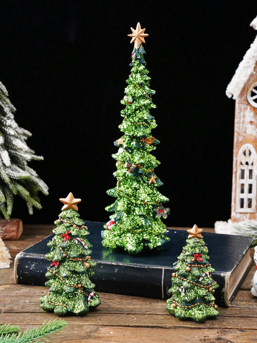 1 szt. Kreatywna, śliczna, zielona choinka na biurko, powierzchnia pokryta brokatem, błyszcząca choinka. Kolorowy materiał żywiczny, ręcznie malowany, nadaje się do dekoracji wnętrz na Boże Narodzenie, dekoracji witryn sklepowych, osobistych prezentów, zimowych dekoracji pokoju, świątecznych dekoracji domu, świątecznych prezentów, świątecznych dekoracji
