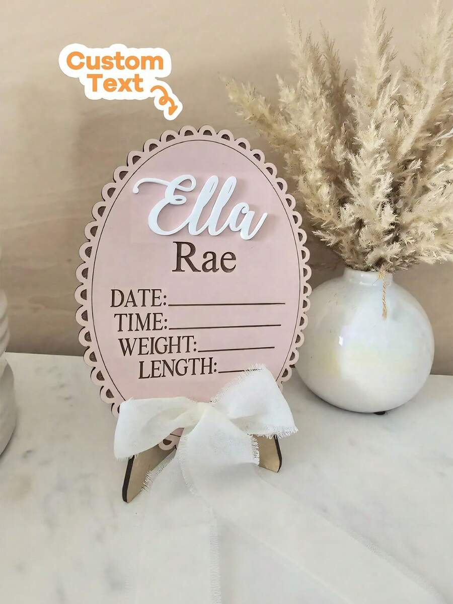 1 szt. Drewniany znak z imieniem noworodka, spersonalizowany znak z wstążką i kokardą z imienia noworodka, okrągły drewniany znak z imieniem urodzeniowym, rekwizyty do zdjęć "Witaj świecie", idealna pamiątka dla świeżo upieczonych rodziców, drewniana taca z ogłoszeniem o narodzinach dziecka, ogłoszenie o narodzinach w szpitalu, miesięczne karty z napisami dla dziewczynki i chłopca
