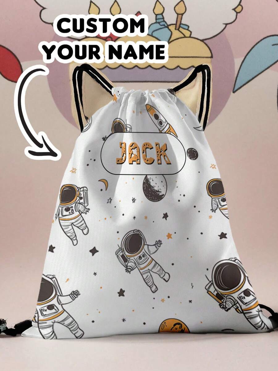 1 szt. spersonalizowany plecak ze ściągaczem z motywem astronauty z kreskówek, można dostosować do własnego, unikalnego projektu, odpowiedni dla dzieci i nastolatków, nadrukuj własne imię lub imiona siostry i kolegów z klasy jako prezent