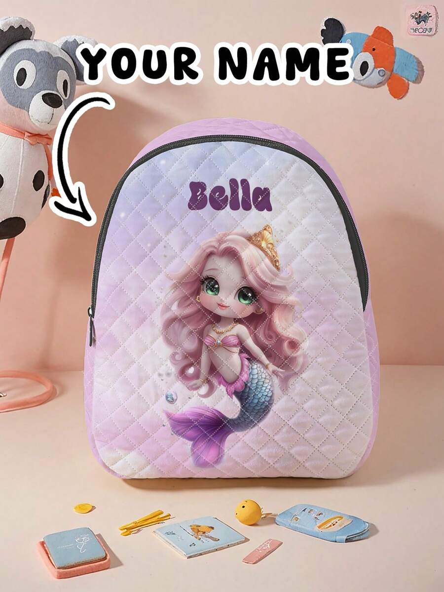 1 szt. spersonalizowany plecak w kratę z kreskówkową syrenką, można dostosować do własnego, unikalnego projektu, niezbędny na powrót do szkoły, można nadrukować własne imię lub podarować siostrze i kolegom z klasy, drukując ich imiona