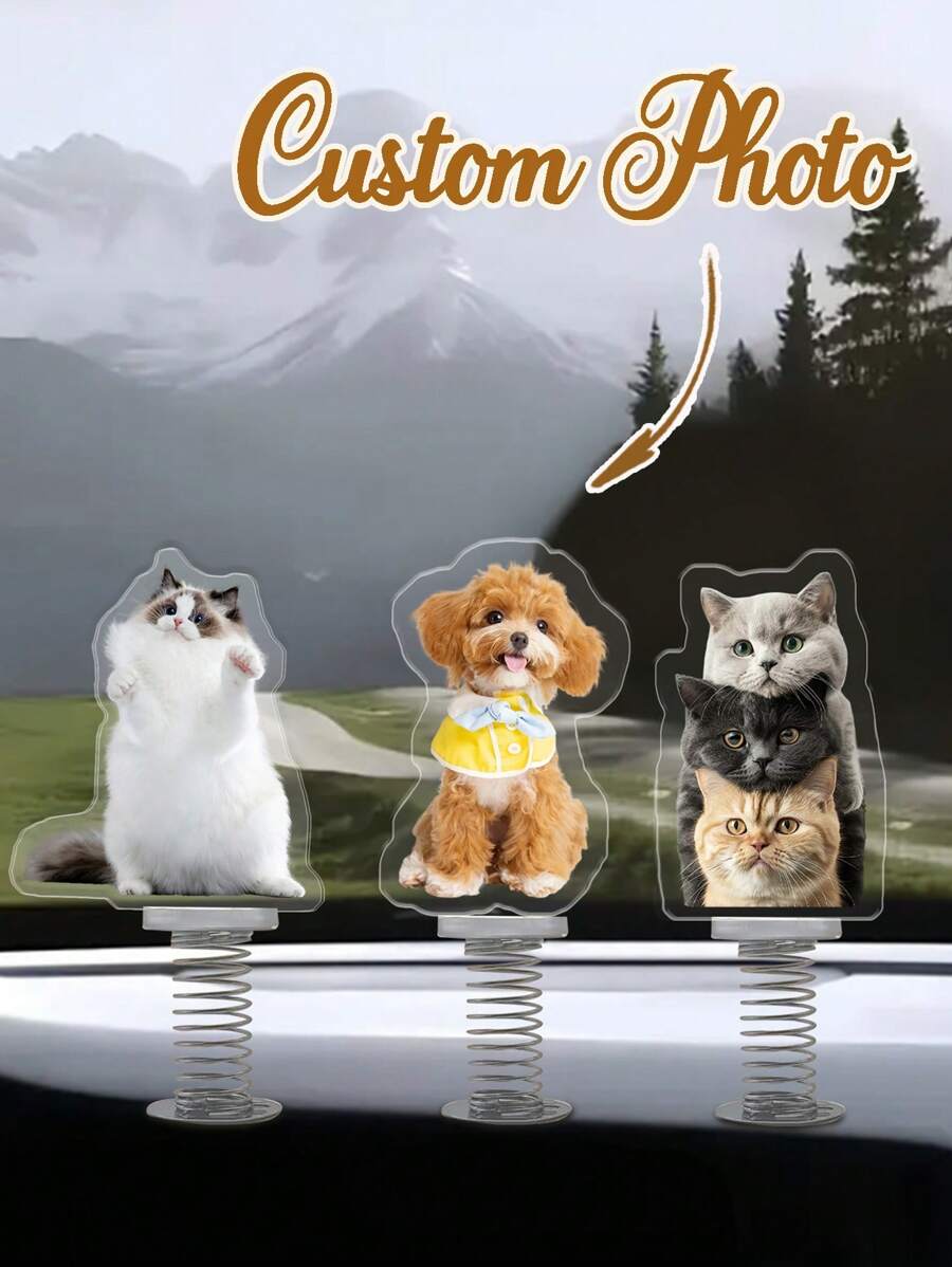 1 szt. spersonalizowana akrylowa dekoracja samochodowa dla zwierząt, wyjątkowa, spersonalizowana, kreatywna dekoracja wiosenna, akrylowa figurka z kiwającą głową, uroczy prezent DIY ze zdjęciem dla chłopaka/dziewczyny, męża/żony, taty/mamy, prezent dla zwierzaka, prezent świąteczny, prezent noworoczny, walentynki, urodziny, rocznica, dzień ojca, dzień matki, prezent dla pary, wyjątkowy prezent dla niej/niego, nadruk graficzny