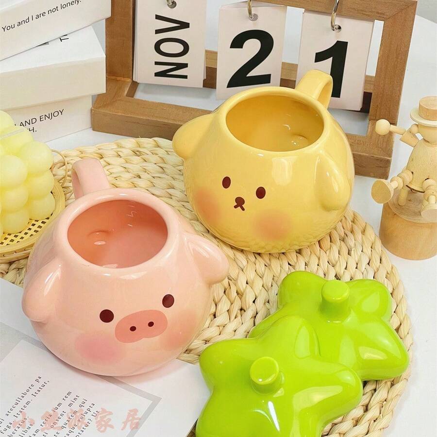 1 szt. Kubek z uroczym rysunkowym prosiaczkiem i psem, kreatywny kubek na wodę dla uroczej pary, elegancki kubek do kawy do domu/akademika, prezent dla dziewczyn, koleżanek z klasy, przyjaciółek, na urodziny, Walentynki