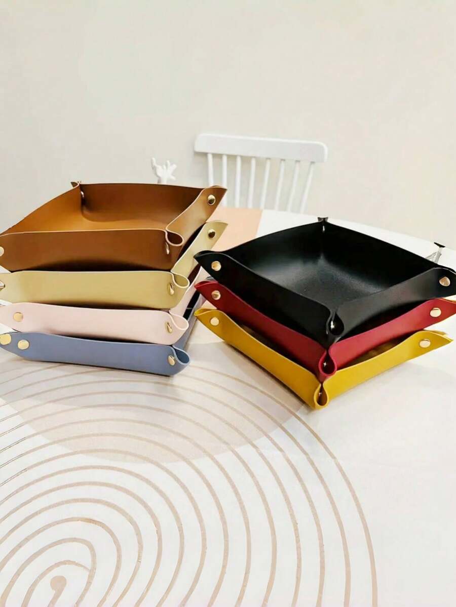 1 szt. Europejska skórzana tacka do przechowywania, tacka na biurko, pudełko do przechowywania biżuterii i kosmetyków, otwarte pudełko do przechowywania, używane do komputerów stacjonarnych, kluczy, kosmetyków, biżuterii – elegancka tacka ekspozycyjna ze skóry PU, używana do akcesoriów do salonu, pudełko do przechowywania mebli