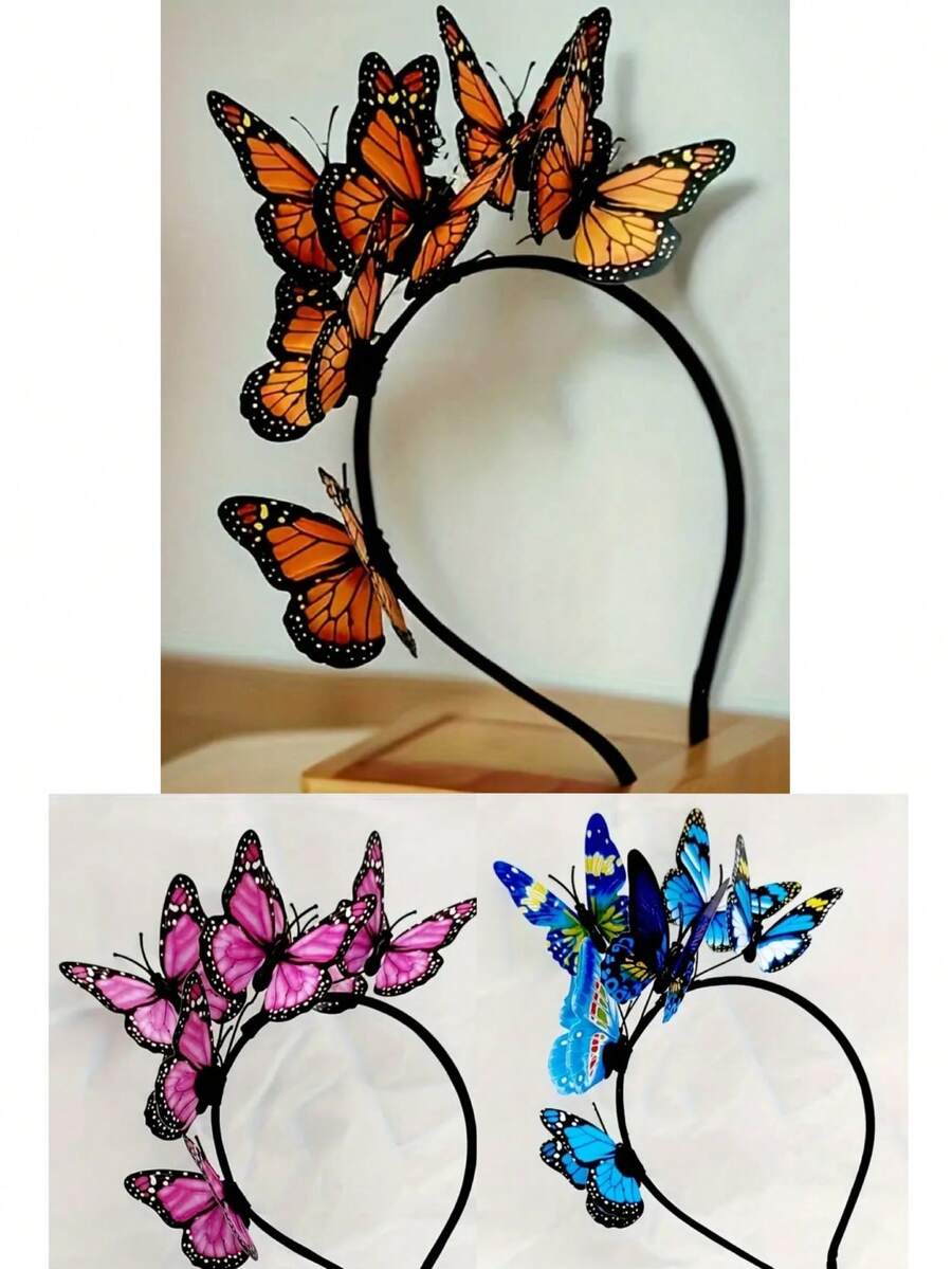 1 szt. modna opaska na głowę z motylem dla kobiet – idealna na Halloween i wieczory panieńskie, urocze plastikowe akcesoria do włosów, elegancka plastikowa opaska na głowę z motylem dla kobiet | opaska z nadrukiem motyla w tonacji tonalnej | elegancki dodatek z popularnymi elementami motyla | opaska bez piór, akcesoria do włosów na imprezę halloweenową, opaska na głowę z koroną na przyjęcie herbaciane