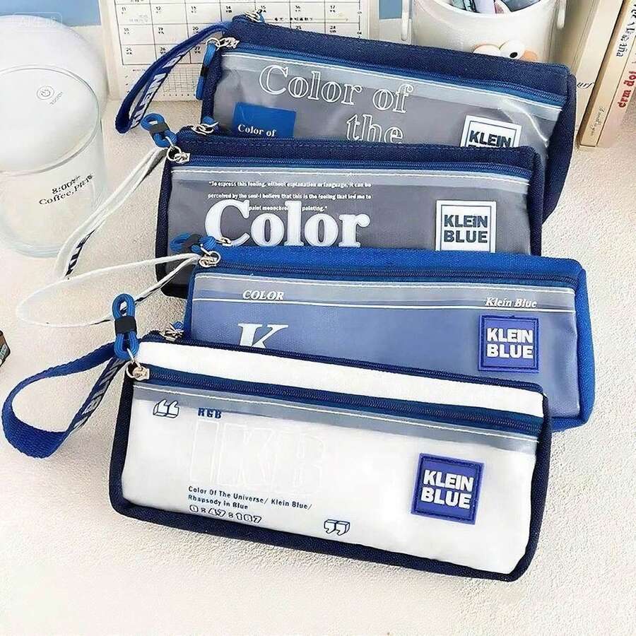 1 szt. Piórnik Klein Blue Oxford Cloth z przezroczystym okienkiem, piórnik Galaxy Blue, wysokiej jakości niebieski piórnik, dwuwarstwowa torba na przybory biurowe dla uczniów z zamkiem błyskawicznym