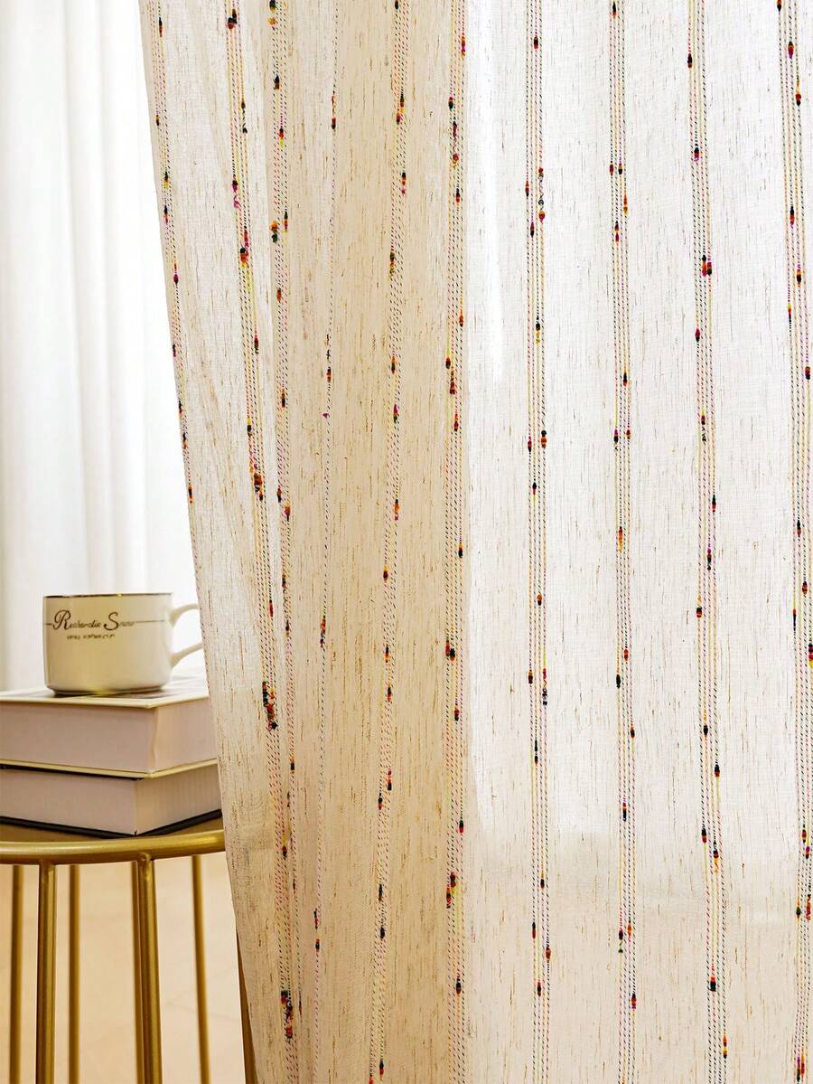 1 szt. Nowa zasłona w tęczowe paski, japońska mieszanka lnu, wielokolorowa przędza tkana, naturalne światło, tęczowe paski tworzą romantyczną atmosferę we francuskim stylu, wieszak z kieszenią na drążek, styl boho do salonu, sypialni, balkonu, dekoracji okiennej