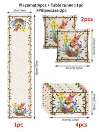 Zestaw dekoracji wielkanocnych 1/4/5/6/7 szt., Królik, Zajączek wielkanocny, Pisanki, Wesołych Świąt Wielkanocnych, Zestaw dekoracji do domu, Dekoracja salonu, Dekoracja sypialni, Dekoracja jadalni, Materiał imitujący len, Dostępne w wielu rozmiarach, Dekoracja stołu jadalnego, Szalik kominkowy, Podkładki, Podstawki, Akcenty domowe #10 Bestsellery