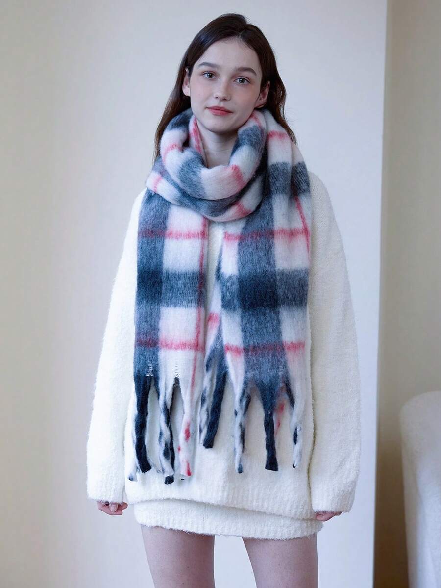 1 szt. damski szalik w kratę trójkolorową w paski, swobodny, ciepły, wygodny, minimalistyczny design, odpowiedni do domu, na zewnątrz, na randki, dojazdy do pracy, uniwersalny