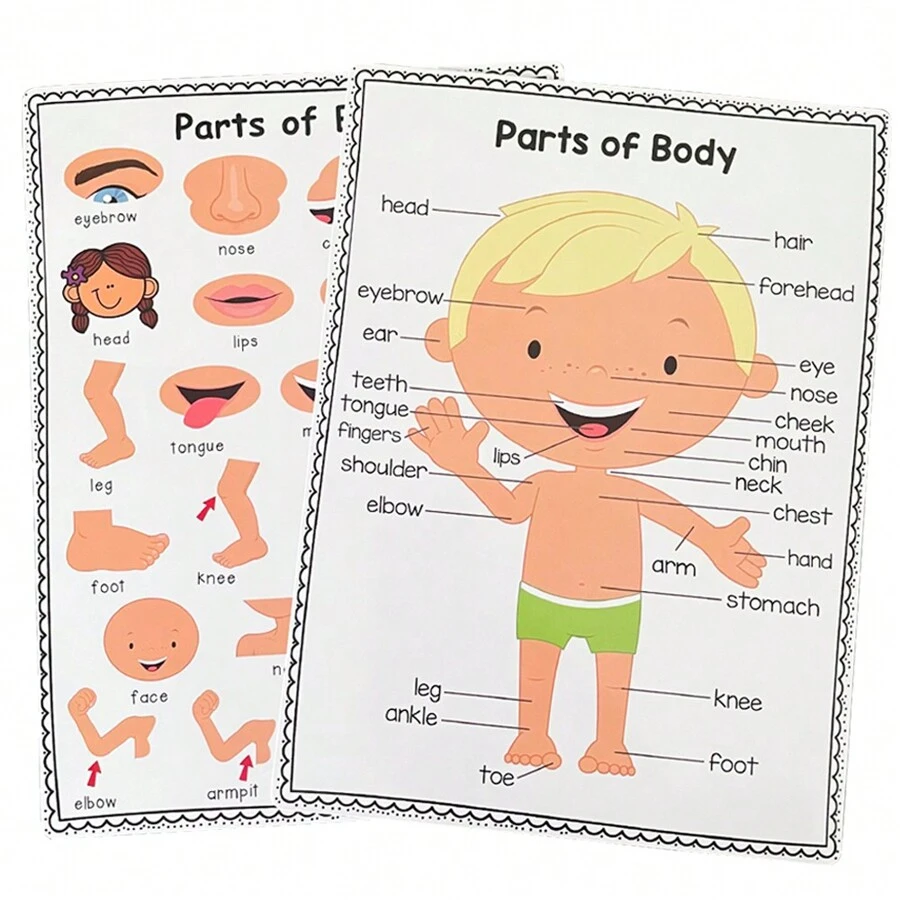 2 szt. Części ciała Plakaty Dziecięca Karta Poznawcza Nauki, Plakaty Przedszkolne Wykresy Ścienne Dekoracje Klasyczne Dekoracje Ścienne Pokoju Dziecięcego Dekoracje Edukacyjne Plakaty A4