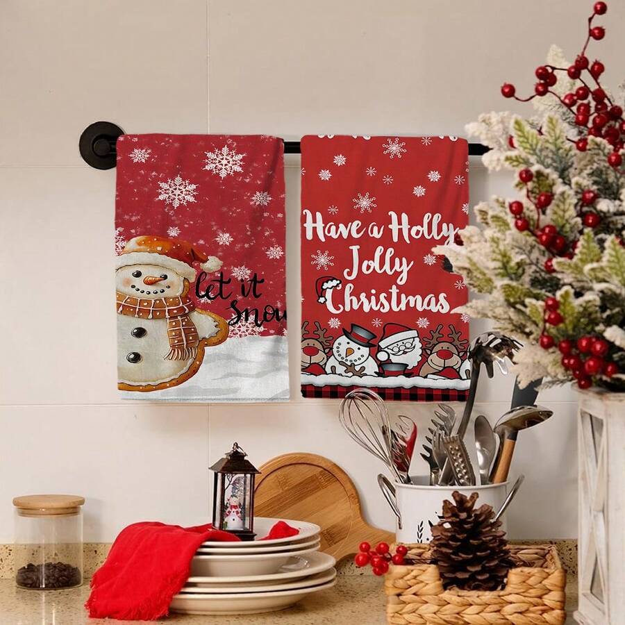 2/4/48 szt. Vintage świąteczne ściereczki kuchenne - ultramiękkie, chłonne poliestrowe ściereczki do naczyń i piernikowe bałwanki, płatki śniegu, renifery, Święty Mikołaj i litery - idealne do dekoracji świątecznych i prezentów noworocznych, dekoracji świątecznych, dekoracji kuchni, dekoracji imprezowych