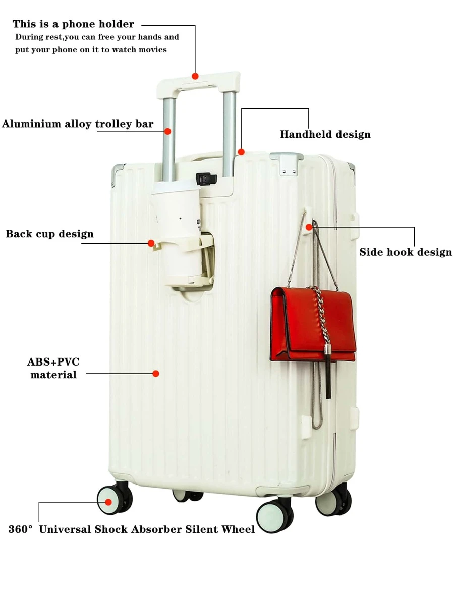 Walizka podróżna o dużej pojemności 20/22/24/26 cali z interfejsem ładowania + uchwytem na kubek + haczykiem wyciszającym Walizka podróżna na czterech kółkach Walizka na kółkach Torba do przechowywania Uniwersalna dla chłopców i dziewcząt Może być używana jako prezent dla przyjaciół Dobre akcesoria podróżne Wolne ręce Odpowiednie dla małych i średnich rodzin Podróże Podróże nadają się również do podróży służbowych, wykorzystując pudełko dla studentów do przechowywania przedmiotów w torbie szkolnej Akcesoria szkolne Przybory szkolne