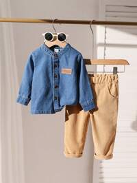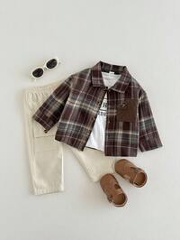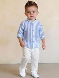 SouflisSouflis Souflis 3 sztuki/zestaw: wielofunkcyjny płaszcz przeciwdeszczowy dla chłopca, koszula w paski z kołnierzykiem i spodnie z elastyczną talią, odpowiedni do dojazdów do pracy, szkoły, na co dzień, na wakacje, wesele i inne okazje, 6 miesięcy-3 lata, odzież dziecięca, odzież, odzież niemowlęca, koszula, spodnie, ubrania dla chłopców w stylu koreańskim, strój dla chłopców w paski, modny strój dla chłopców, ubrania dla chłopców w stylu retro, ubrania dla chłopców w stylu preppy, strój dla chłopców w paski, strój dla chłopców na jesień i zimę #4 Bestsellery