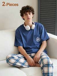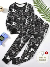 Genkimix KidsGenkimix Kids 4-częściowy zestaw piżam dla chłopców, czarno-szaro-melanżowy, w kratę, krótki rękaw, bluzka i spodnie, miękki, wygodny, swobodny krój, elastyczna i oddychająca dzianina, można prać w pralce, (2 komplety sprzedawane oddzielnie) Moda na powrót do szkoły