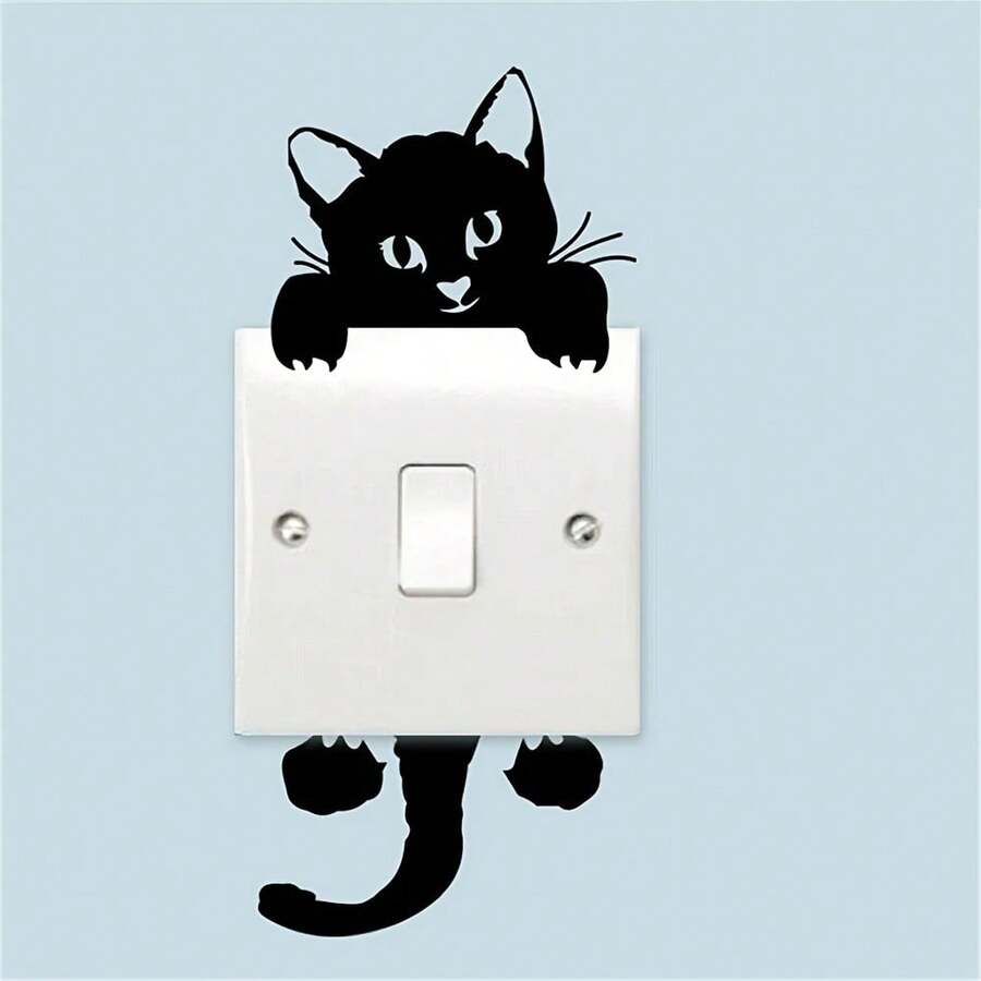 3-częściowa naklejka na przełącznik światła z kotem, czarna, słodka naklejka na przełącznik światła z kotem, naklejka na telefon komórkowy, dekoracja domu DIY, naklejka ścienna z kreskówkowym zwierzęciem, PVC, sztuka ścienna