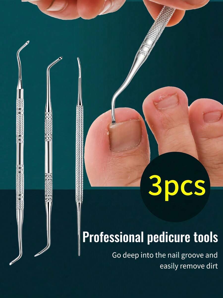 Zestaw 3 narzędzi do pielęgnacji wrastających paznokci u stóp, narzędzia do pedicure dla stóp, w tym podnośnik do paznokci u stóp i pilnik do paznokci u stóp, odpowiedni do leczenia wrastających paznokci u stóp - stal nierdzewna klasy medycznej, narzędzie do czyszczenia paznokci i pedicure, narzędzie do pielęgnacji paznokci u stóp - w zestawie pudełko do przechowywania