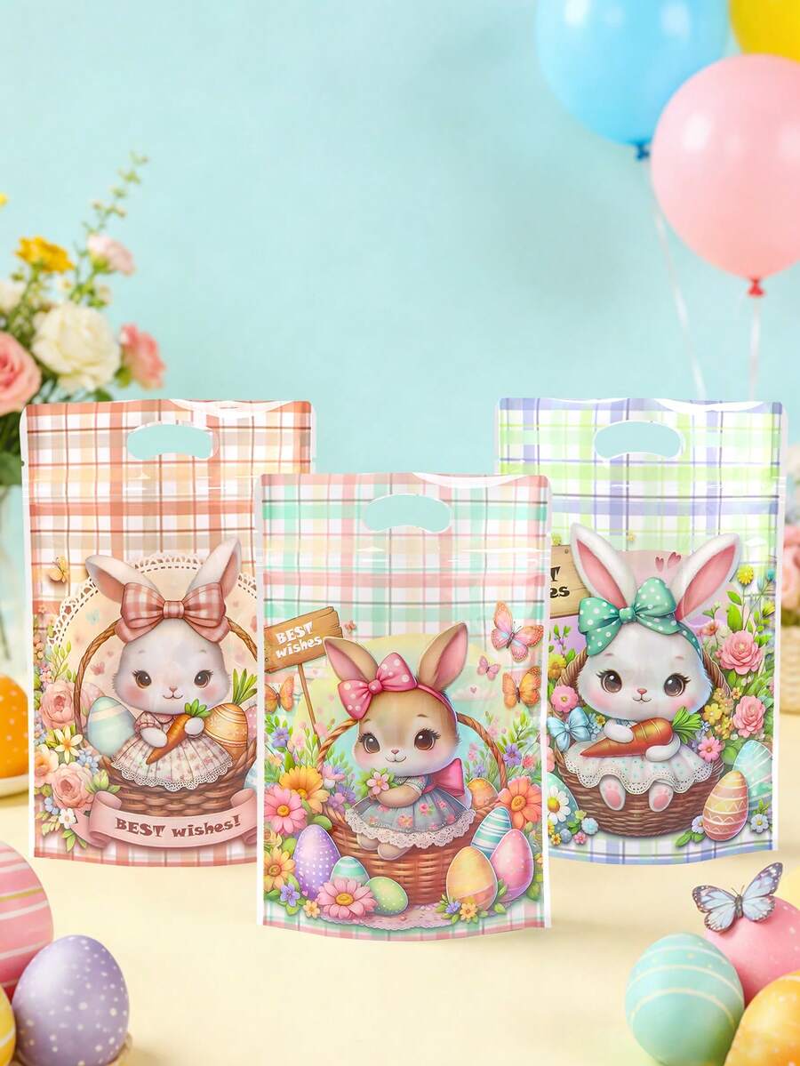 50 szt. stojących torebek prezentowych "Wesołych Świąt Wielkanocnych", torebek prezentowych z motywem wielkanocnego królika w kratkę, małych torebek prezentowych na przyjęcie wielkanocne, dekoracji wielkanocnych, kolorowych, zapieczętowanych torebek na słodycze, torebek z motywem wielkanocnego królika, torebek, wielkanocnych torebek na zakupy, wielkanocnych torebek na porcje ciasteczek, wielkanocnych torebek do wypieków w kuchni, wielkanocnych dekoracji stołu, wielkanocnych dekoracji pokoju, wielkanocnych torebek prezentowych, upominków na przyjęcia