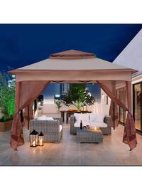 Pawilon ogrodowy typu pergola z zadaszeniem, markiza wodoodporna, wolnostojący pawilon ogrodowy, pawilon tarasowy, baldachim, osłona przeciwsłoneczna na taras, ogród, ok. 2,5 x 3 x 2,5 m, kremowo-biały