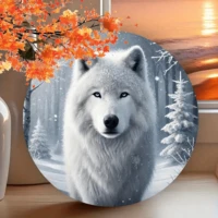 Marzycielska, ośnieżona góra z motywem białego wilka, okrągły metalowy szyld, płaska, drukowana zawieszka ścienna z blachy białej do baru, kawiarni, klubu, kuchni, bez prądu, 8 x 8 cali – opakowanie 1 sztuki