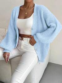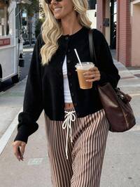 PIĘKNO Jesienny, nowy, czarny, jednorzędowy, dzianinowy kardigan z okrągłym dekoltem i długim rękawem, delikatny, elegancki, romantyczny, swobodny, swobodny, modny, minimalistyczny i uniwersalny, odpowiedni na wyjścia, walentynkowe randki, dojazdy do pracy i różne okazje. Ten kardigan to idealny wybór na wiosenną odzież damską. #3 Bestsellery