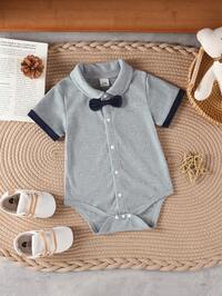 1 szt. Niemowlę/Dziewczynka, unisex, niemowlę/małe dziecko, 0-3 lata, swobodny, prążkowany, perłowy, dzianinowy, krótki rękaw, body polo, odpowiedni na wiosnę/lato #6 Bestsellery