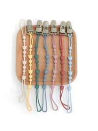 1/4 szt. klipsów do smoczków dla niemowląt, drewniane klipsy, silikon, uroczy kształt serca, jednoczęściowa konstrukcja, akcesoria do ząbkowania, odpowiednie do łóżeczka, idealny prezent dla dziecka, niebieski, zielony, beżowy, różowy
