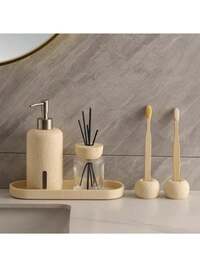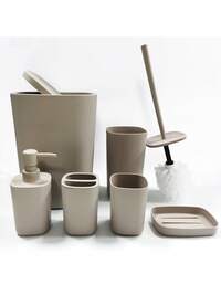 Zestaw akcesoriów łazienkowych, 6-częściowy plastikowy zestaw upominkowy, uchwyt na szczoteczkę do zębów, kubek na szczoteczkę do zębów, dozownik do mydła, mydelniczka, uchwyt na szczotkę toaletową, kosz na śmieci, zestaw prezentowy na urodziny, parapetówkę i święta, dostępny w czterech kolorach: beżowym, białym, czerwonym, szarym i czarnym #2 Bestsellery