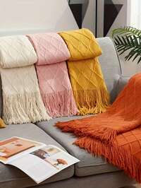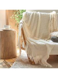 Długi, beżowy koc z frędzlami w kształcie rombów, dostępny w wielu kolorach, miękki i wygodny, odpowiedni na każdą porę roku, wielofunkcyjny, odpowiedni do łóżek, sof, podróży, na kemping i do wnętrz samochodów - koc z frędzlami w stylu nordyckim, wykonany z całorocznego włókna poliestrowego, wygodny i oddychający, wzór w romby - idealny wybór dla miłośników podróży - przenośne opakowanie. 130*170CM