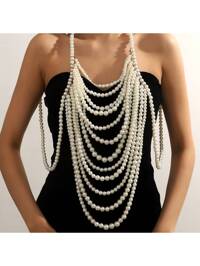 1 szt. Elegancki, luksusowy, wielowarstwowy naszyjnik z pereł syntetycznych, łańcuszek na ciało, swobodny płaszcz, dekoracyjny szal, odpowiedni na imprezy, bale, wesela, szal ślubny, styl boho 1 szt. Elegancki, wszechstronny, ręcznie tkany, biały, wielowarstwowy naszyjnik z frędzlami i sztucznymi perłami, łańcuszek na ramię, odpowiedni do formalnych sukienek damskich, na okazje takie jak urodziny, ślub, Święto Dziękczynienia, Boże Narodzenie, Wielkanoc, Halloween, Walentynki, Eid Al-Fitr