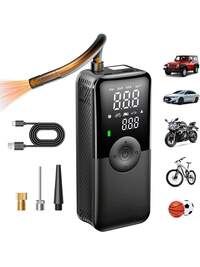 Pompka do opon samochodowych, przenośna sprężarka powietrza, przewodowa/bezprzewodowa, podwójne zastosowanie, 7,4 V/DC12 V, 150 PSI, z cyfrowym manometrem, szybkie pompowanie i automatyczne wyłączanie, z diodą LED, odpowiednia do samochodów/motocykli/rowerów/koszykówek, akcesoria samochodowe, prezent. 2000 mAh 7,4 V/DC12 V (Uwaga: model przewodowy nie zawiera akumulatora)