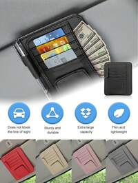 Wielofunkcyjny uchwyt na szybę samochodu z klipsem – wygodny w użyciu i ustawieniu, w użyciu, mieści karty i gotówkę – nadaje się do przechowywania paragonów parkingowych, prawa jazdy, dokumentów biurowych, przechowywania w pojeździe, niezbędnych rzeczy w podróży, kompaktowy design, modny wygląd, solidna konstrukcja, niezawodne mocowanie, uchwyt na dokumenty, idealny wybór dla podróżujących drogą