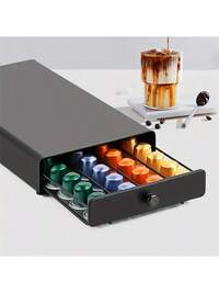 Shoxil1 szt. Organizer na stację kawową, pudełko do przechowywania kapsułek kawy, dozownik na serwetki i słomki do baru w salonie, odpowiedni do kawiarni lub baru z herbatą mleczną, akcesoria do kawy, uchwyt na kubki papierowe, uchwyt na serwetki, prostopadłościan, wielokratkowy, pudełko do przechowywania sztućców na przyjęcia, artykuły szkolne