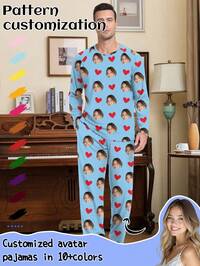 Personalizowany męski komplet piżamowy z długim rękawem, możliwość nadruku dowolnego wzoru. Personalizowana piżama ze zdjęciami, zabawnymi, spersonalizowanymi obrazkami. Wygodna bielizna nocna. Nadaje się na Walentynki, urodziny, prezenty itp. Spersonalizowana, kolorowa, urocza, dowcipna, wyjątkowa, ekskluzywna. Idealny prezent dla chłopaka, dla chłopaka, rodziny, przyjaciół, seniorów. Modna na jesień i świąteczne przyjęcia.